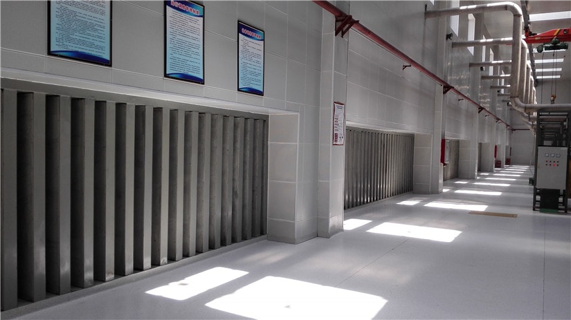通過對噪音源進行測試和分析,根據(jù)噪音波頻的不同及現(xiàn)場實際情況,通過對機房安裝隔音門窗,吸隔音吊頂,吸隔音墻體,對設(shè)備安裝隔振裝置,煙囪消音器等手段,將噪聲源與外界進行隔離。另外,為避免機房內(nèi)高溫,配備通風(fēng)散熱消聲系統(tǒng)。經(jīng)過治理后的機房外達到(社會生活環(huán)境噪聲排放標準》(GB22337-2008)和《工業(yè)企業(yè)廠界噪聲標準》(GB12348-2008)的2類區(qū)標準即:白天60dB(A),夜間50dB(A)。