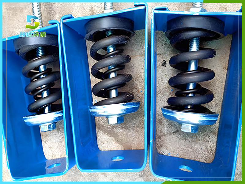吊架減振器,采用特制的阻尼材料與特制的彈簧相結(jié)合,以金屬彈簧為主,具有自振頻率低,阻尼適當、隔振降噪效果明顯的功能。在保證隔離中低頻噪聲時的良好效果同時避免高頻失效現(xiàn)象。